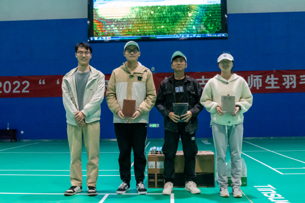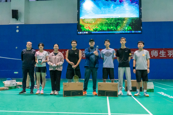 本次师生羽毛球赛为团体赛,每个队伍由师生共同组成,共计8个队。比赛设有男双、女双、混双、男单和女单五个项目,采用15分三局两胜制。本着“增进感情,交流技术”的原则,各队在比赛中积极拼搏,高远球、扣杀、吊球等各路球技在赛场上百花齐放。师生们在场下共同交流战术,在场上默契配合或相互切磋,选手们高超的球技博得了观众们的一阵阵喝彩,呈现了一场场精彩的比赛。最终,由刘子阳、柳广鑫和张鹏担任队长的三支队伍分别获得冠军、亚军、季军,杨朝合教授、柴永明教授、潘原副教授分别为其颁奖。李月、王子豪、孙光政获得“优秀裁判”称号,研究生会主席车垚为其颁奖。赛后师生共同合影留念,本次比赛圆满落下帷幕。