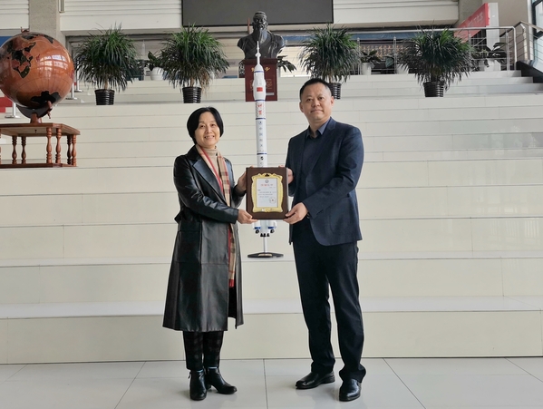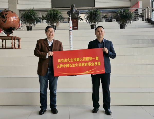 捐赠仪式上,张永宁向田克进对公司公司教育事业发展的支持表示感谢,刘欣梅为田克进颁发捐赠证书,孙茂骥与田克进签署捐赠协议。田克进向现场师生讲解了长征二号运载火箭的总体设计、简体结构、动力系统等技术,并通过短视频的方式向师生展示了火箭的发射过程和现场报道。田克进与师生交流了航空煤油等火箭燃料的特点和原理,并对师生感兴趣的问题一一解答。