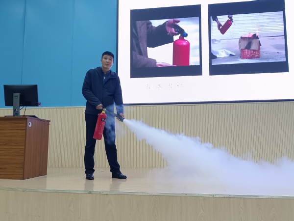 讲座伊始,石鹏飞以近几年高校发生的消防安全事故引入,讲解了火灾事故发生的原因以及预防措施,并向同学们展示了部分实验室及员工公寓违规操作的图片,突出介绍了不按规定使用实验仪器、缺乏安全意识所造成的严重后果。他告诫同学们要按照相关规定进行用电操作、实验操作,及时进行安全检查,注重身边的隐患,养成忧患意识。同时,用视频指导同学们如何处理消防事故,强调处置初期火灾要坚持“先控制、后消灭”及“救人第一”的原则,并向同学们分享了逃生经验以及技巧。最后,石鹏飞就“如何正确使用灭火器”进行了具体讲解以及现场演练。