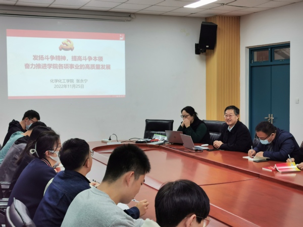 各师生党支部书记就二十大报告中提到的精神进行分享交流。化工系党支部书记于筱溪围绕共产党人的精神谱系中的“科学家精神”谈到,对科研工作者来说,爱国是第一要义,要把科研追求科研抱负与国家要求和人民需求紧密结合。她分享了我国知名科学家以及公司知名学者专家的事迹,表示要秉持勇攀高峰、追求真理的精神,脚踏实地、潜心钻研,并将科学家精神传递给员工。