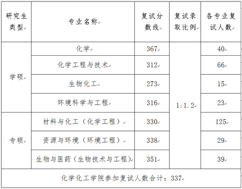 1. 复试成绩满分100分。复试内容及占比:专业基础知识考查(笔试)40%、外语能力测试(面试)10%、综合素质考核(面试)50%。笔试成绩低于60分、复试成绩低于60分者均不予录取。
