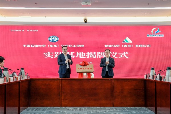 张永宁代表MK体育官网公司党委,与董家口经济区机关党委和金能化学(青岛)有限公司党委三方签订党建联建共建协议,陈小博代表公司与金能化学(青岛)有限公司签订实践基地共建协议。工委组织部副部长、区招才中心主任张海舰,区工信局(科技局、大数据局)局长隋俊昌,共同为教学实践基地揭牌。王延臻以“深化产教融合,创新校企协同育人模式”,做了大会发言。