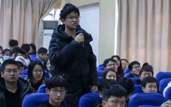 交流环节,张新功一一详细解答了同学们关于“如何确定个人发展方向”“废塑料高值循环原理”等问题。