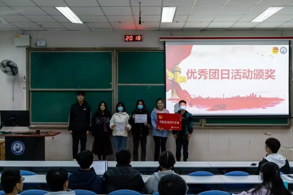 答辩开始后,各团支部代表按照抽签顺序依次上台,通过PPT讲解、视频播放等形式,展示了丰富多彩的团日活动,并分享了活动的心得与体会。本月团日活动中,21级和22级各支部热情高涨。为更好的加深入传承和弘扬雷锋精神,22级五支部联合举办团日活动,充分发挥各支部的优势,加强各支部之前的联系,以“春回大地,奉献人间”为主题开展团日活动。以各支部代表参与雷锋扮演等形式,切实感受雷锋事迹,展现青年力量,同时又将双碳战略与剪纸活动有机结合,宣扬环保意识。应化2102团支部开展“奉献青春,爱使我行”主题团日活动,该支部面向社会发放自制环保手册,积极传播节能减排和维护海洋环境的绿色环保理念。为进一步在实践中体会双碳政策,该支部还开展节能减排分享会,前往青岛西海岸康恒环保能源有限公司进行调研。以上团日活动充分展示了当代老员工的青春与活力。经过激烈的角逐,最终评选出2个优秀团日活动并进行了颁奖。