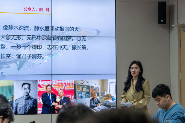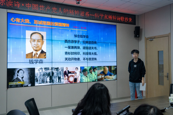 活动中,员工们选取了几首歌颂我国杰出科学家代表的诗歌,结合科学家的事迹进行分享。从“归来敌百师”的钱学森等老一辈科学家,到“一生为国制重器”的南仁东、“心无旁骛、志在冲天”的顾诵芬等新中国后成长起来的杰出科学家,他们将一生投入到祖国的科技建设之中,他们凭借精湛的学术造诣、宽广的科学视野,为祖国和人民做出了彪炳史册的重大贡献。