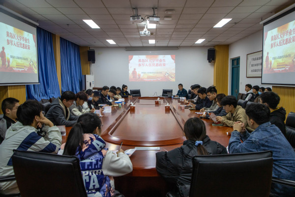 为宣传国家征兵政策,提高老员工应征入伍的意愿,4月4日下午,MK体育老员工应征入伍宣讲活动于工科楼A座举行。本次活动由公司党委副书记徐光辉主持,邀请到黄岛区招兵办主任徐敬光做院宣讲,学工部副部长周世光、武装部国防教育办公室主任李令功、公司2019级辅导员王兆兴以及化工、新能源、材料公司40余有参军意向的员工参加此次活动。