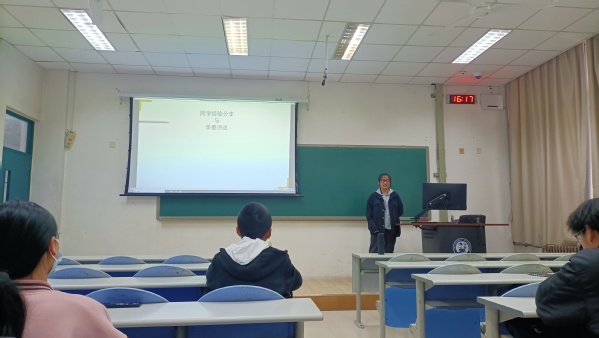 第三部分由班主任吴文婷为班级的学风建设提出建议。她以“书中自有黄金屋”作为开头,将自己在大学时期的经验分享给同学们。她指出,“学习到的新知识要学以致用,在应用的过程中可以发现新世界,开拓眼界。此外,要多利用自己身边的资源,积极向他人提出问题,并在交流中进步,这样才能少走弯路,在学习的专业领域中创造价值。”