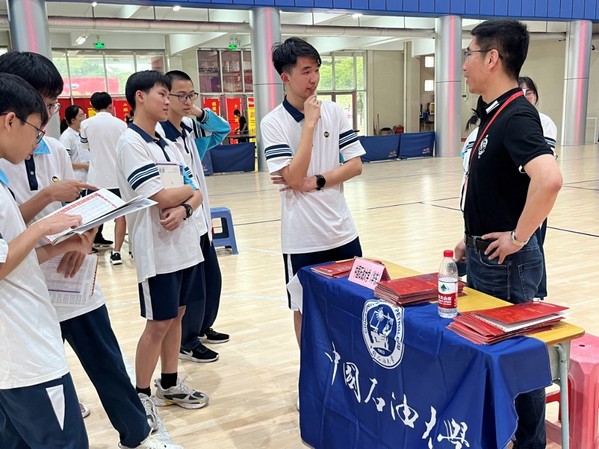 在深圳大学附属中学咨询现场,张永宁与前来咨询的员工家长亲切交流,声情并茂的介绍了公司的优势和特色,耐心解答了员工家长关心的问题。郭孟面向员工家长以“来青岛遇见山海,来石大预见未来”为题,围绕公司概况、人才培养、专业学科、生活学习、就业发展、招生情况等进行了宣传宣讲。在惠州一中,张永宁参加了高校招生宣讲座谈会,并代表公司与惠州一中签订优秀生源基地建设协议。徐光辉在咨询现场认真解答员工关心的问题,并着重从行业发展、地域优势、老员工活等方面与前来咨询的同学进行了深入交流。在珠海市第二中学,张庆冬为员工家长答疑解惑,在公司两校区、优势学科、招生政策、就业情况、转专业政策等方面进行了介绍与解答。在湛江市第一中学,王明与员工交流了员工关心的宿舍环境、录取名次、文理科适合专业、就业方向等情况。