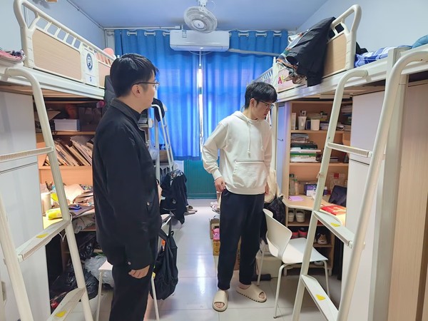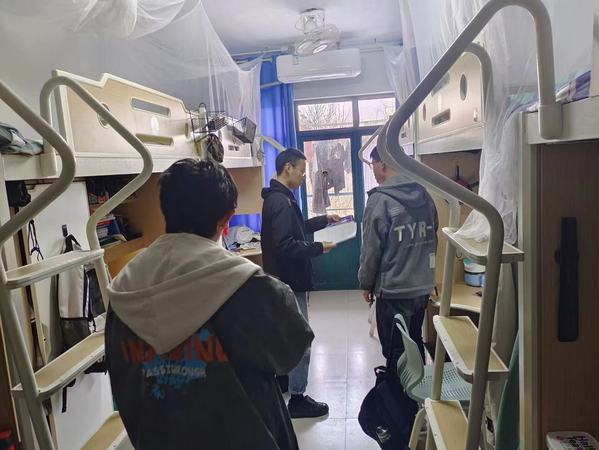 各年级辅导员详细的检查了员工宿舍是否存在私拉电线、违规使用电器、宿舍内抽烟及存放易燃易爆物品等宿舍安全问题,针对检查过程中发现的问题和隐患提出立整立改的要求。通过列举校园生活中常见的火灾情况,讲解引起校园火灾的诸多原因,向员工介绍有关火灾逃生的方法,强调要把安全隐患杜绝在萌芽之中,提升员工在发生消防安全问题时的应对能力。同时,对员工进行网络防诈骗教育工作,提醒员工谨防网络诈骗,不要轻易进行汇款转账。2019级辅导员王兆兴表示:“通过深入员工宿舍,对员工进行安全教育,让员工可以更深刻认识到宿舍安全隐患的危害,提升员工在出现消防安全问题时的应对能力。”