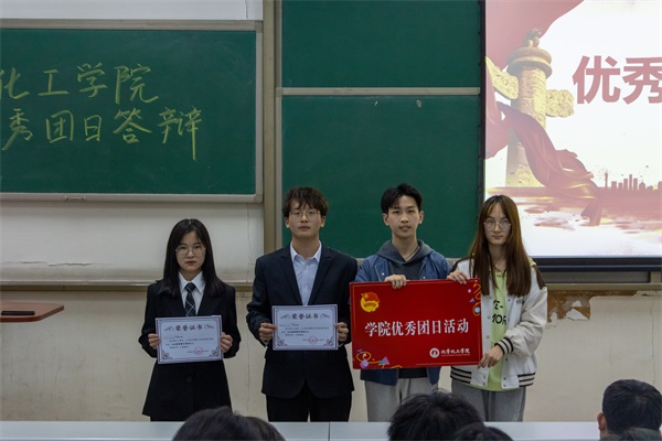 活动伊始,由主持人田俊敏介绍本次团日活动答辩流程以及评选规则。接着,各团支部代表按次序上台,以PPT讲解,视频播放,图像剪影等形式进行展示与心得分享。为了更好的贯彻主题内容,本研化工2101、化工2103、应化2103三支部走进中康颐养院,通过与老人下象棋,促膝长谈来关注老人的生活与身体状况,使各支部成员积极参与到社会实践中去,建立起成员与社会的桥梁,提高了支部成员的凝聚力。化工2203、化安2202、环境2201开展以“铭记先辈来时路,不负春光向未来为主题的团日活动。支部成员前往青岛革命烈士纪念馆缅怀革命先烈,感悟先辈精神。通过支部内成员《铭记历史,缅怀先烈》主题演讲与生动的话剧表演《巴黎和会》再品二十大,同时开展“造梦计划”,结合二十大精神与英烈精神展望未来,进行了老员工调研,了解当今老员工对热点事件的所感所想。活动方案周密,活动形式创新,支部特色显著。
