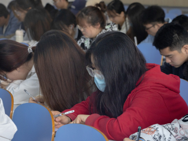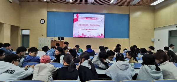 为增强员工党员和入党积极分子的身份意识,激励引导员工做好先锋、担好责任,5月7日下午,2021级在南教300召开以“奋斗是最鲜亮的底色,行动是最有力的告白”为主题的教育大会。辅导员窦雅琴主持,年级204名员工党员和入党积极分子参会。