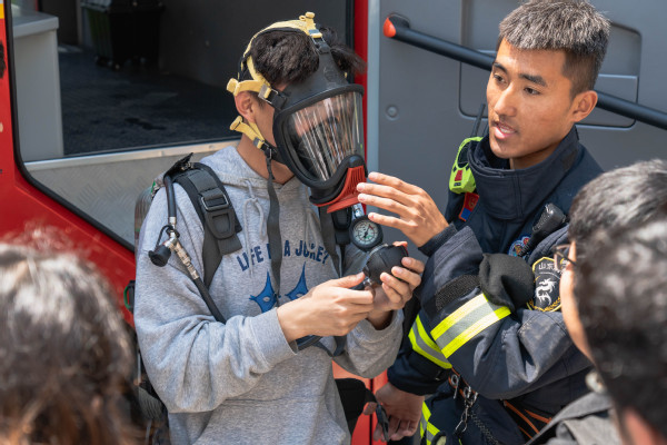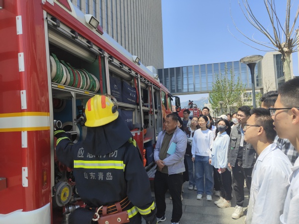 演练以国重楼楼内工作室起火为背景,着火后,楼内消防报警设备发出报警信号,消防值班员接警后立刻上报火情并启动应急疏散预案。演练开始,烟雾弹释放,警报拉响,全体师生迅速做出反应,按照指定的安全出口和疏散路线,俯身用湿毛巾捂住口鼻,快速安全有序的撤离至国重楼南门广场,用时约2分钟。随后,消防大队进行灭火演练,师生代表现场进行了灭火器的实景操作,并了解了消防员防护装置的穿戴方式以及消防车的内部构造和使用原理。公司研究生辅导员郭孟对同学们的本次演练给予了充分肯定,他提到,同学们坚持疏散逃生基本原则,在疏散过程中保持了安全良好的秩序和较快的反应能力,并强调了预防火灾与逃生演习的重要性,同时希望同学们关注消防,学习消防,顾全大局,救助结合,提高安全责任意识和遇险自救能力。