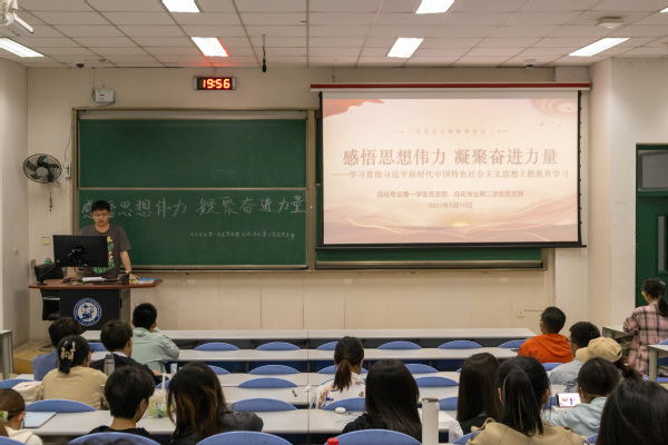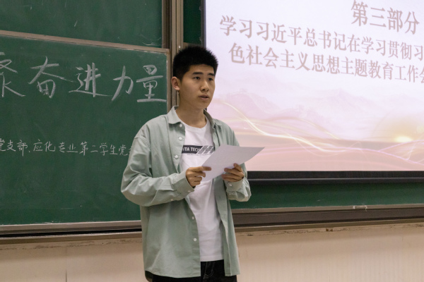 为深入学习贯彻习近平新时代中国特色社会主义思想主题教育,强化理论武装,理论学习往深里走、往实里走、往心里走,5月18日,应化专业第一、第二员工党支部联合开展“感悟思想伟力,凝聚奋进力量”主题教育活动。活动由应化专业第一员工党支部书记孙正洋主持,应化专业第一、第二员工党支部党员、发展对象和入党积极分子参加。