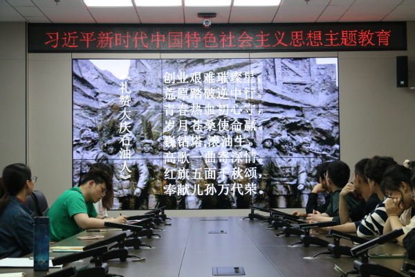 本次活动由大庆精神背景介绍、观看学习视频、我心中的大庆精神分享、诗歌诵读、辅导员寄语以及书写感想六个部分。会上,牛鑫磊同志详细介绍到:“大庆油田处于新中国成立初期,中国被扣上一顶贫油的帽子,苏联专家也尽数离开中国,同时加上美国的油品制裁,中国处于一个及其困难的环境。面对当时一无经验,二无技术,三无设备的情况下,还是凭借顽强的毅力成功拿下了大庆油田”。会上众多同志纷纷借由诗歌朗诵发表了自己的对大庆精神的理解和感悟。辅导员薛慧提到:“大庆精神不是只存在于过去那个艰苦的年代,在当今社会仍然需要同学们发扬大庆精神。身为石大学子的我们为自己制定一个长期的目标,不应该只把眼光局限于眼前的短暂利益,应该把个人的发展与祖国的发展紧密结合,让青春在实现中华民族伟大复兴的中国梦中绽放异彩”。会后,大家进行了合影留念。