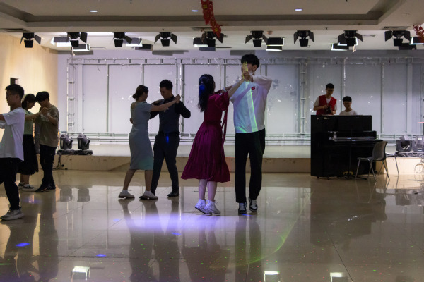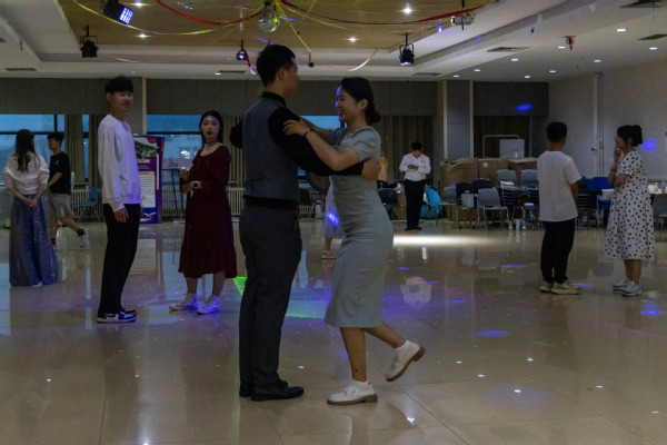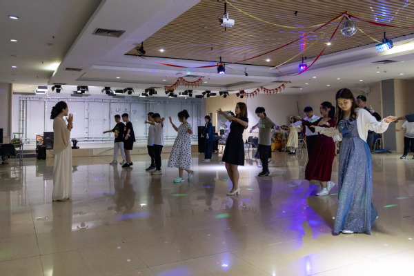 在第一篇章伊始,周静通过动作演示,具体地向员工介绍华尔兹的基本动作,指出起舞时的神态与气质。接着,她就四方步、前进方步及后退方步,对参加成员进行实践教学,在一次次练习中让大家逐渐熟练掌握舞步。之后将人员以男女各一划分为数十组合,旨在通过不断磨合协调,实现步调统一。在互相练习中,现场员工们相互配合,舞出华丽的舞步。随后,活动进入到第二篇章在自由训练过程中,周静下场根据各组合的动作开合、面部表情、走位规范做出针对性指导。她提到,华尔兹是生命力非常强的舞蹈形式,要结合身体的升降、倾斜、摆荡,带动舞步移动,使舞步起伏连绵,舞姿华丽典雅。之后,音乐声起,各个组合一齐舞蹈,步伐一致。极大的表现出了舞蹈的自信和表演的享受。在舞蹈过程中,他们打破原有的组合,现场随机组合将舞会的氛围推向高潮,在优雅曼妙的舞姿中展现出了属于员工们特有的精神面貌与昂扬自信。最后,在最后一曲中随着舞曲结束,本次活动也拉下了帷幕。
