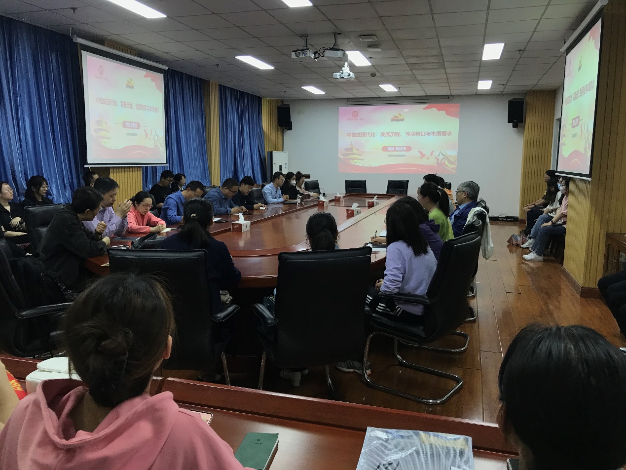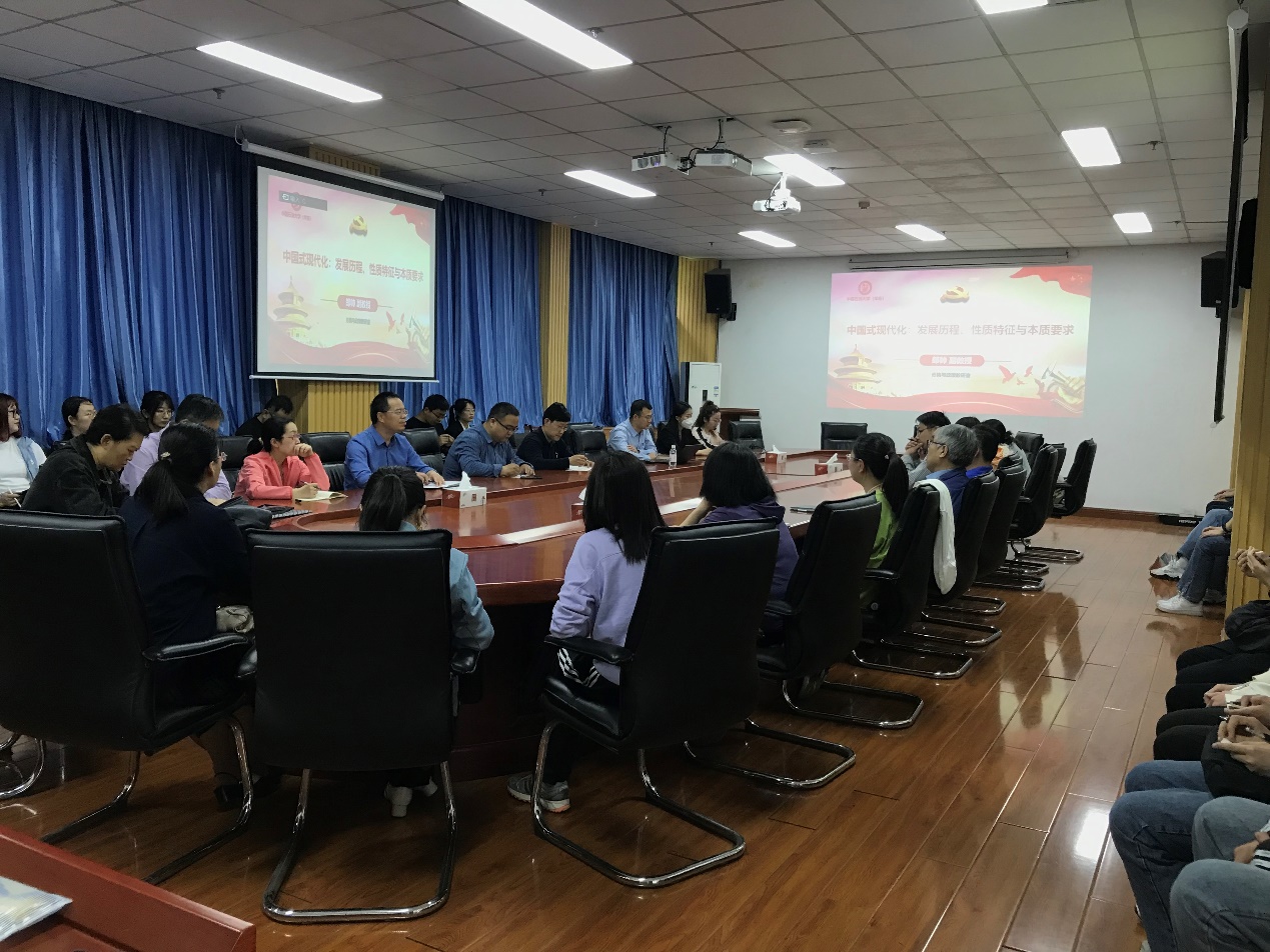 MK体育党支部联合化学实验中心党支部于5月17日举办了一场主题教育活动,特邀中国石油大学(华东)马克思主义公司形势与政策教研室主任、郎帅副教授为大家带来以"中国式现代化:发展历程、性质特征与本质要求"为题的讲座。活动还邀请了MK体育本科生和研究生党支部的代表参加。