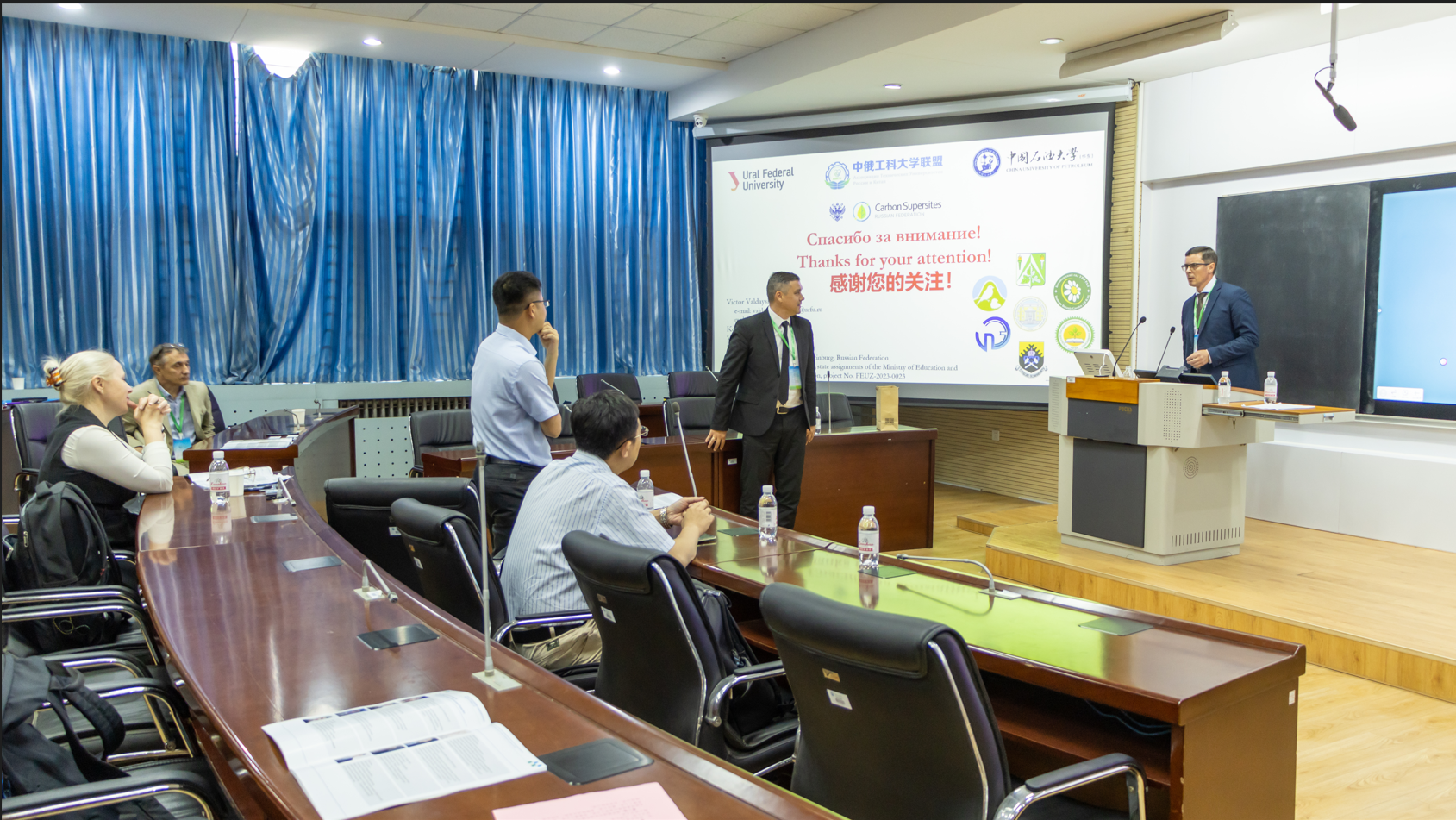 会议期间,公司承办了绿色化工与环境保护分论坛,由公司副经理曾景斌教授和乌拉尔联邦大学Pavel Pershin教授共同主持。来自哈尔滨工业大学的周伟星教授、乌拉尔联邦大学Pavel Pershin教授、MK体育官网胡涵教授、莫斯科动力大学Evgenii Ignatev教授、彼尔姆国立研究理工大学Elena Kalinina教授、天津大学高鑫教授、乌拉尔联邦大学Victor Valdayskikh教授和北京化工大学冯超博士等8位学者分别做了题为“Clean Combustion and pollution Control of Hydrocarbon Fuel”、“Made in UrFU: Ural Federal University's progress in hydrogen energy”、”Operando Characterization of Energy Materials based on Electron Spin、”Software package for wind energy calculations“Wind Turbine””、“Biological sequestration during landscaping of the sanitary protection zone”、”Understanding of microwave-inducedhot-spot behaviour for innovation of chemical separation method”、“Organization of a monitoring system for carbon greenhouse gases and assessing the carbon budget of taiga communities at the Ural Federal University of the enterprise”、“Efficient capture and resource utilization of carbon dioxide in iron and steel industry”做了主题报告,与会专家围绕碳氢燃料的清洁利用、氢能的储存与利用、二氧化碳捕集与资源化等主题进行了深入的交流。