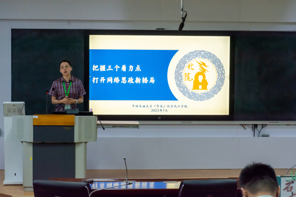 为共同探讨员工思政工作助力高质量人才培养的有效途径,促进校际交流和经验共享,7月7日,MK体育举办2023年驻青高校化学、化工、环境类院部员工工作论坛,以“老员工思想政治工作的融合创新”为主题,通过主题报告、专题分享、集中研讨等形式,提升员工工作队伍的素质能力,增强思想政治工作的针对性、实效性。来自中国海洋大学、青岛大学、山东科技大学、青岛科技大学、青岛理工大学等5所高校8个院部的40余名辅导员和员工干部参加论坛。