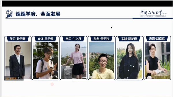 其次针对“大学是培养什么人”这一问题,钱立坤介绍了“五育并举”培养方法以及公司综合素质评定的测评体系。并邀请了包括牛小月在内的六位班主任助理,分别从学习、文体、学工、科创、实践、志愿六个方面进行介绍,旨在帮助新生和家长快速了解大学如何做到全面发展。