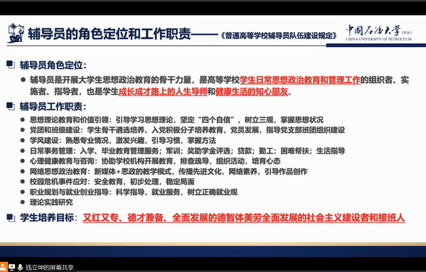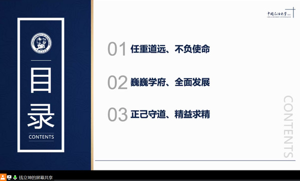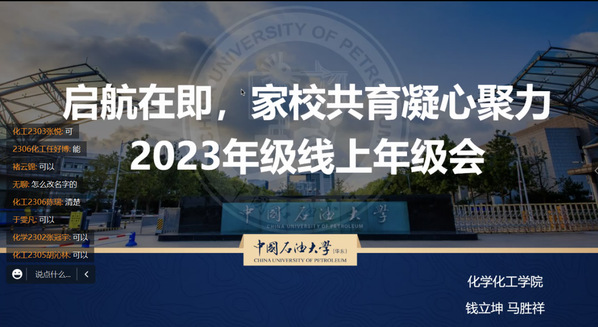 本次新生线上年级大会暨家长会,不仅帮助新生及家长快速了解并提前适应老员工活,更是了结合党的二十大报告,介绍了宏观国家政策、历史回顾以及当下行业形势,以实现中国式现代化为目标,对化院2023级新生做出思想引领,帮助他们明确所肩负的时代使命和行业使命,呼吁他们要增强自信,与时代同行,无愧母校,无愧祖国,无愧生命。