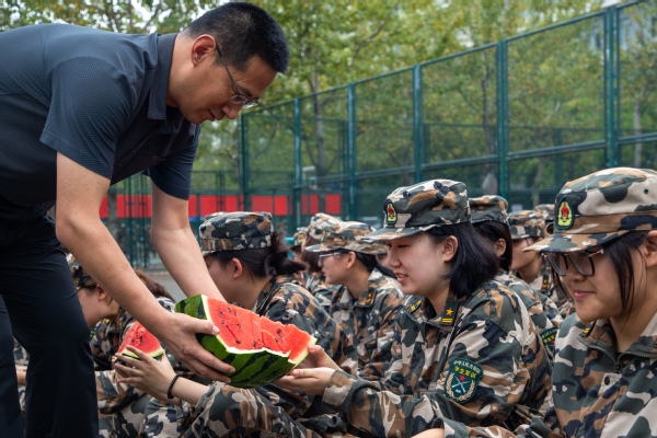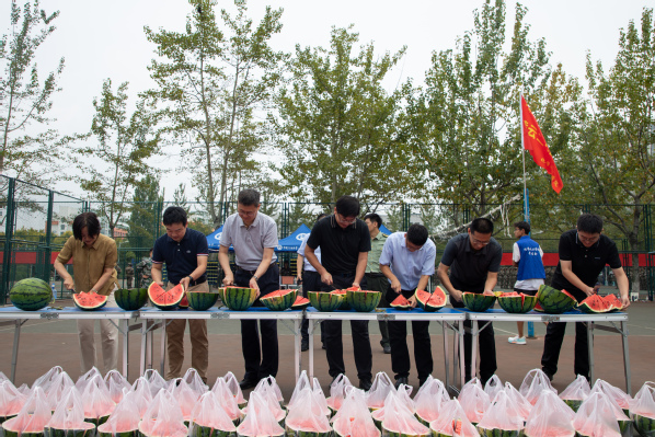 随后,公司领导为参训员工切分西瓜,同时向见习同学表示关心。烈日炎炎,切分下的西瓜给予了公司参训新生最真切的慰问。