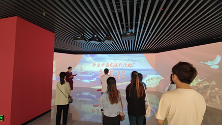 在5G高新视频党建教育展厅里,通过讲解员讲解、交互视频展示、VR互动等高科技多媒体技术,围绕“政治统领、理论武装、堪当重任、组织建设、正风肃纪、反腐攻坚、自我革命、党建引领”八个主题,师生们认真学习了中国共产党百年奋斗历程和重大成就,从百年党史中党的辉煌成就、艰辛历程、历史经验、优良传统感悟红色政权来之不易、新中国来之不易、中国特色社会主义来之不易。
