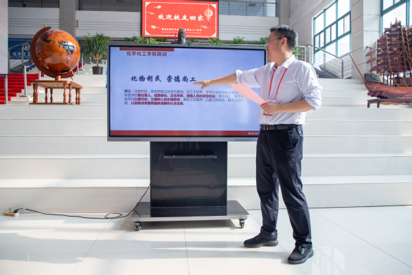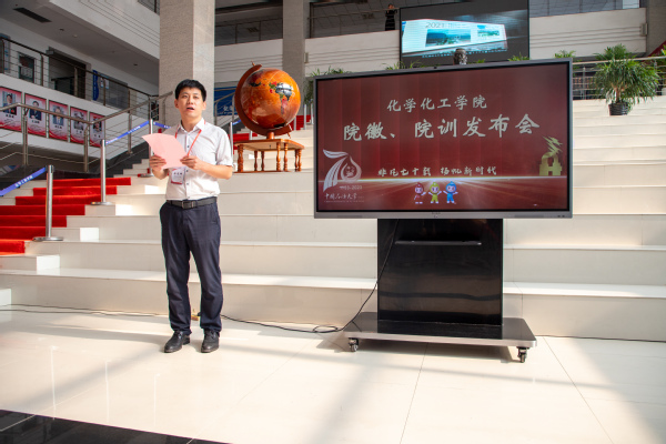 随后,张永宁书记向参会人员介绍院徽、院训的设计理念。院徽由三个字母C、C、E构成,分别代表chemistry(化学)、chemical(化工)、environment(环境)/engineering(工程)/energy(能源),体现出公司的学科组成和工程、能源特色;承载了化院人创造、合作、创新的精神内涵。CCE三个字母组成如同六边形的苯环形状,又像是变型的“化”字,与公司的学科属性和公司名称相呼应。外形像一个心形,代表着公司为党育人、为国育才的初心和使命。院徽整体寓意着公司在建设能源化工领域世界一流、多学科协调发展的高水平研究型公司的道路上奋勇向前。