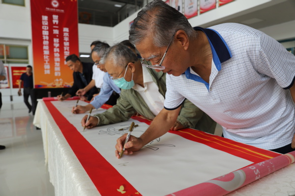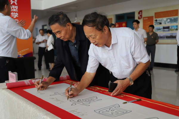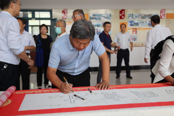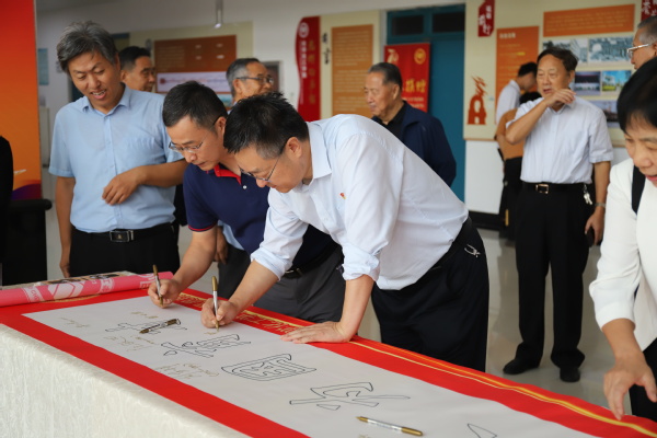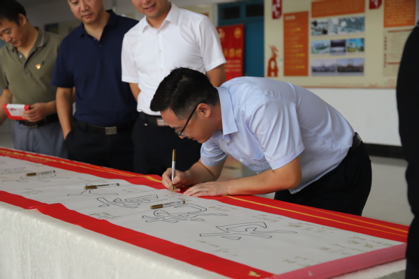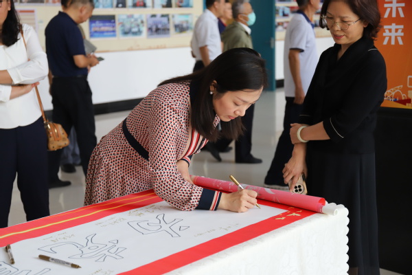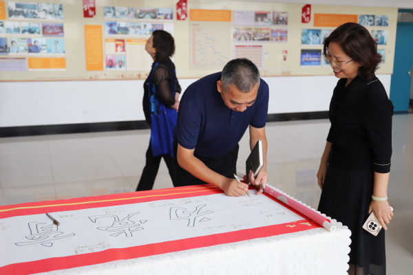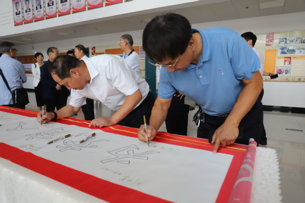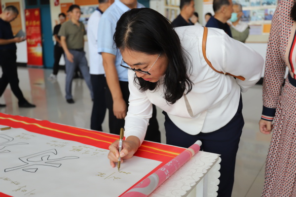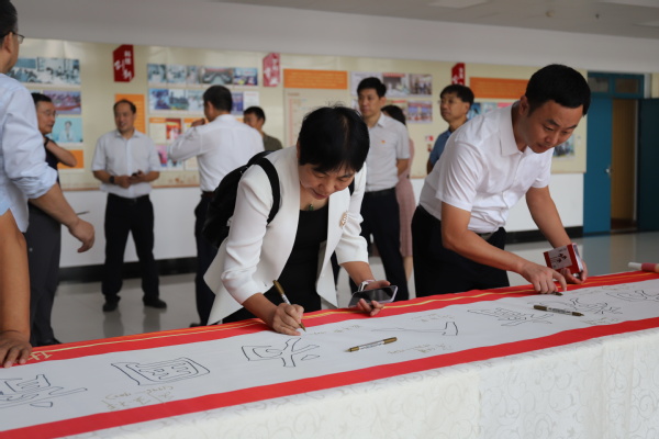 座谈开始前,公司党委书记张永宁带领各位员工共同参观公司主题文化墙,共同回顾公司的发展历程,随后员工们纷纷在“为党育人、为国育才”的字幅签名并合影留念。
