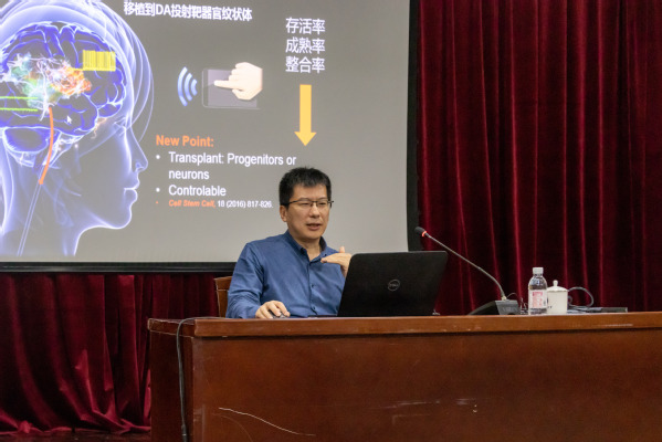 董毅教授从人类对永生的追求引入对基因排序的研究,并由此延展出人类胚胎干细胞方向研究的无数做出卓越贡献的科研人员以及他们的科研成果。在对有关胚胎干细胞的历史沿革进行科普后,董毅教授讲述了运动对神经精神疾病的预防与影响以及人类胚胎干细胞诱导分化类器官。他深入浅出的将科研前沿成果与实际生活紧密联系,提高了同学们对生物科学的浓厚兴趣,更是在讲解过程中进一步培养了同学们正确的人生观、价值观,帮助同学们正确面对与应对抑郁症等疾病。在会议最后,老师和同学们进行了提问,董毅教授都进行了解答,报告现场气氛热烈。