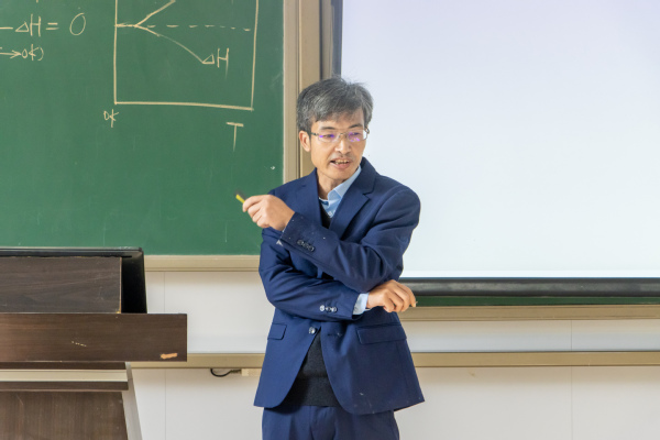 叶天旭老师在示范课堂中结合可逆原电池热力学中电动势与热力学函数间的关系,在对专业内涵深刻理解的基础上,阐释了对课程思政元素独到的感悟。他将热力学知识点拓展至当代青年员工求学问道的现实,引用毛主席“恰同学少年,风华正茂“的诗句鼓励同学们在求学的”书山“与”学海“中华年立志,利用时空变换的极限思维提升自身科学素养,早有所成,向前辈科学家一样 “指点江山,激扬文字”。