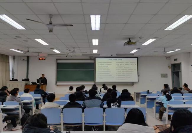 会议伊始,张龙力就个人发展经历向同学们做了分享,并鼓励同学们增强专业认知,深化基础学科学习。然后,卢玉坤就化学学科情况、专业历史沿革、专业课程体系及专业就业前景展开介绍,并对专业培养方案进行解读。立足于学科平台、教研团队及课程建设在全国高校中的优势,卢玉坤详细讲述了化学专业“知识-能力-应用与创新”的三级化学课程体系、“多元融合、梯次提高”的实践教学与科学训练体系。卢玉坤表示,本科生不仅应在理论和知识上建立良好基础,还应培养个人能力与科学素养,并灵活将知识进行创新与应用。卢玉坤还提到了化学专业近4年以来本科毕业生发展的方向,为同学们树立了专业自信。