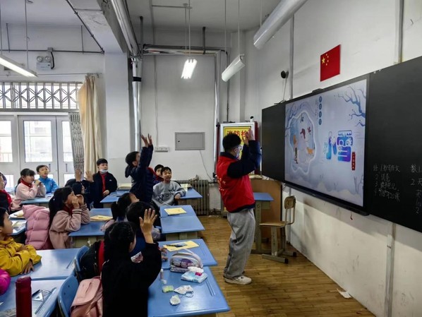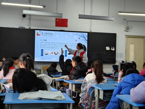 17日下午,志愿者们在东门集合完毕后,步行前往珠江路小学。在到达公司后,志愿者们按照分组分别前往各个教室,以讲解PPT、放映动画视频的方式介绍了二十四节气。对于即将迎来的小雪节气,团员 着重介绍了小雪的节气特点与风俗习惯,以增强小朋友们的认知与理解。面对志愿者的问题,小员工们举手抢答,在轻松愉快的氛围中就学到了关于二十四节气的知识。此外,参与活动的团员表示,二十四节气被联合国教科文组织列为非物质文化遗产,我们向小员工宣讲二十四节气,有利于他们从小树立文化自信,增强民族自豪感。