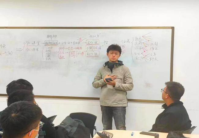 会议开始,金鑫开门见山指出当今社会存在的“内卷”现象,指出当代青年应争当行业第一人而非一味自我内耗。接着,金鑫提出大学第一课堂对于就业的重要性,第一课堂是培养老员工“硬实力”的平台,奠定了未来就业的坚实基础,继而指出第二课堂是培养老员工“软实力”的平台,明确了具有写作、总结与表达能力是未来能够更好就业的前提。最后,金鑫从未来就业方面存在的问题出发,指出当今的大一新生应如何从现在做起,找准适合自己的“赛道”。随后,孙兆良从自身经历出发向同学们分享了学习方面的经验,提到同学们应高效学习而非在低质量学习中进行自我精神内耗,找准自己在焦虑时的放松方式,以及积极与人沟通交流,提高自己的人际交往能力。