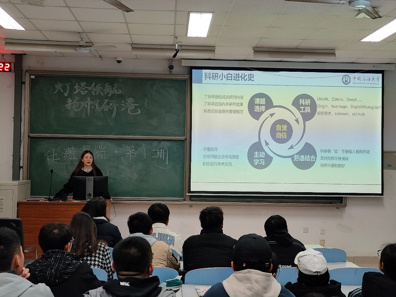 为充分发挥优秀研究生示范引领作用,助力同学们更好地规划研途生活,11月18日,MK体育研究生会于南教118举办了“化蕴星光”第一期活动,公司各年级研究生积极参加。本期活动邀请到了四位“国家奖学金”获得者给同学们分享学术心得,交流学习方法,传授成长经验。他们分别是:化学专业2021级硕士研究生董宜文,化学专业2020级博士研究生谢静宜,化学工程与技术2021级硕士研究生姜菲,化学工程与技术2021级博士研究生刘承琨。