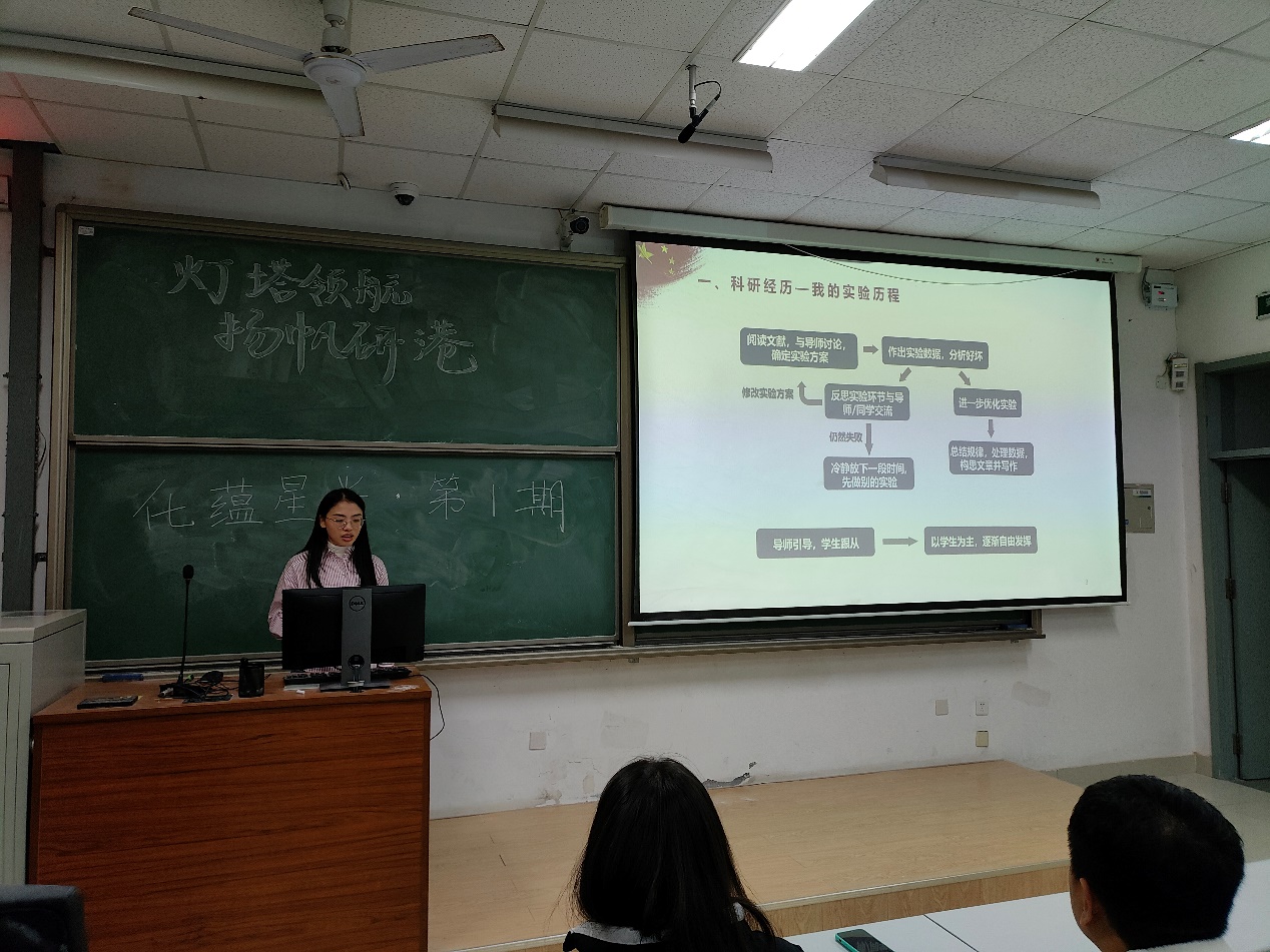 活动中,各主讲人主要围绕结合自己学术方面的亲身经历,为同学们分享自己的科研感悟。谢静宜同学强调面对实验中的失败,要及时调整心态、做好复盘,并且要对未来早做打算。姜菲同学表示要注重个人发展多元化,并且要对阅读过的文献进行整理,力求形成自己的知识体系。刘承琨同学则从自己带领低年级员工进行科研的经验出发,指出了一系列需要同学们着重突破的问题。最后董宜文学长为大家介绍了自己“由因推果,由果寻因”的学术写作思路,就论文如何切入的问题给出了自己的“方法论”。