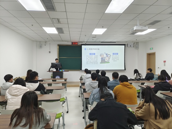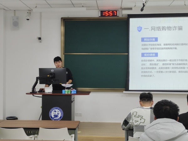 会议伊始,耿旭超详细列举了在生活中常见的诈骗行为,包括网络购物诈骗、网络兼职诈骗、朋友转账诈骗等等,同时针对电信网络诈骗相关的法律法规进行讲解,耿旭超提醒党支部成员们电信网络诈骗无处不在,一定要增强安全意识,保护好个人隐私。王飞认为,现在的诈骗越来越高级,越来越普遍,我们一定要擦亮双眼,加强自我防范意识与法律保护意识,牢记骗人之心不可有,防人之心不可无。为了加深成员记忆,达到人人识骗的目的,耿旭超结合真实案例,对有关如何防范、处理电信诈骗进行了讲解,他告诫支部成员们切勿贪图小便宜,时刻明辨电信诈骗,面对电信诈骗要做到不轻信、不透露、不汇款、不转账,时刻谨记“防电信诈骗十守则”,遇到类似诈骗要及时报警,减少个人损失。