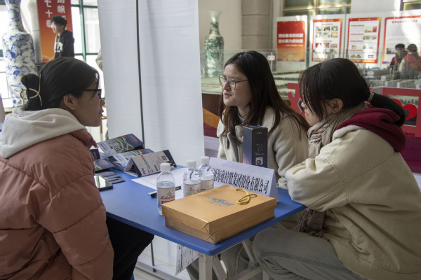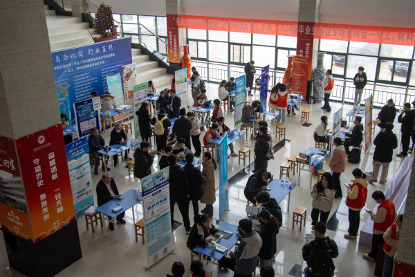 招聘会现场,毕业生纷纷向心仪单位投递简历,和用人单位面对面交流,表达自己的就业意愿,充分展示自身优势和学科专业技能。化工公司本科毕业生赵志扬同学对与化工生产研发相关的岗位较为感兴趣,他希望自己未来的工作能够更好地发挥专业所学,具有较好的成长空间。他表示,自己更关注专业相关岗位的发展前景,并有志深耕于此。还有许多非应届毕业生也来到招聘会现场,提前了解市场对人才的需求,为将来求职做好充足准备。