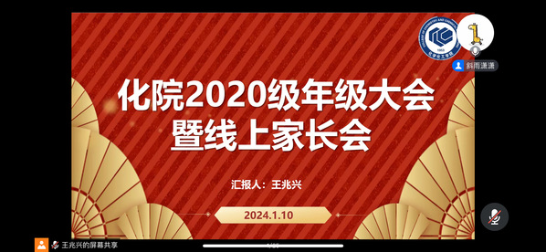 1月10日晚,公司2020级召开线上家长会暨寒假年级大会,2020级全体本科生及员工家长参会。会议由辅导员王兆兴主讲。