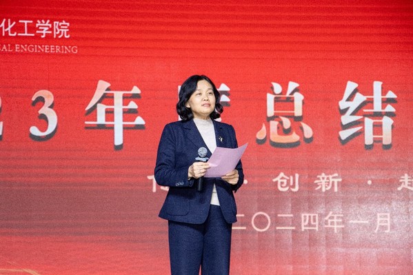 大会伊始,戴彩丽副董事长发表新年贺词,她对公司过去一年取得的成绩表示肯定,并提出了新的要求和希望,鼓励大家锐意进取、携手并进,为化院更加美好的明天不懈奋斗。刘欣梅经理作了2023年工作总结报告,她从党建工作、团队队伍建设、人才培养、科研与平台建设、国际合作与交流、实验室建设和员工工作等方面对一年来公司取得的成绩进行总结,并对全体师生员工的辛勤耕耘表示感谢。随后,公司隆重表彰了2022、2023年度各项国家级、省部级、校级荣誉获得者,学科竞赛、创新创业大赛优秀指导教师,省部级、校级荣誉获奖单位和团队。接着,新入职教师登台,依次做自我介绍,并为公司和全体师生送上祝福。