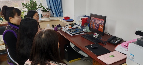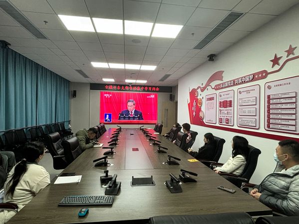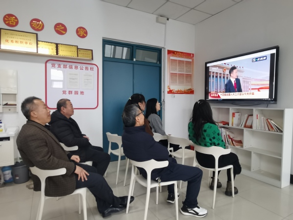 公司党委副书记徐光辉、全体辅导员和部分员工党员代表共同观看两会开幕