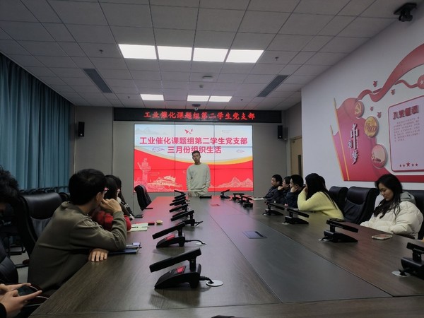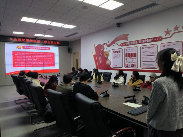为深入学习贯彻全国两会精神,引导支部党员强化理论修养,坚定理想信念,2024年3月14日晚19点到21点,工业催化课题组第二员工党支部全体党员和积极分子于国重楼B219会议室深入学习全国两会精神。