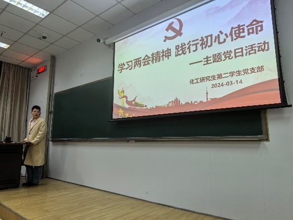 2024年3月14日晚,在第十四届全国人大二次会议、全国政协十四届二次会议顺利召开之际,为深入贯彻学习全国两会精神,化工研究生第二员工党支部于南堂106召开“学习两会精神,践行初心使命”主题党日活动。本次活动由化工研究生第二员工党支部书记康博远主持,支部党员、预备党员和部分积极分子参加。