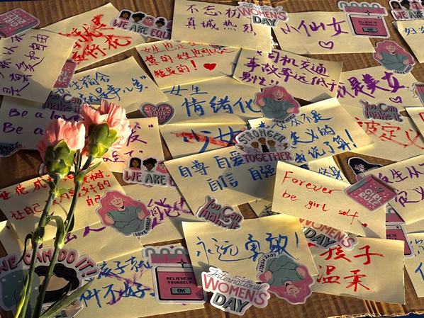 3月17日,环境2201、环境2302、化工2306团支部在荟萃广场支起了一个特殊的摊位,其中的纸板上写着社会对女性的诸多刻板印象与恶意标签,如“女生情绪化”、“一看就是女司机”、“能力不强”等。参与者撕下自己最讨厌被定义的标签,并写下对女性的美好祝愿,便可获得一束鲜花或者一盆多肉。本次活动吸引了许多不同女性群体参与,她们纷纷写下“永远勇敢”、“天生就强”、“我最美丽”、“不被定义”等对女性的美好祝愿,鼓励女性勇敢地追求自我价值,打破刻板印象与偏见,做最真实最闪耀的自己。