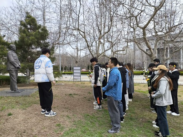 为激发团员的历史使命感与社会责任感,4月4日应化2103、化工2103、化安2202、化学2202团支部于逸夫楼杨光华塑像前举办“清明缅怀先辈,菊花遥寄敬仰”活动。