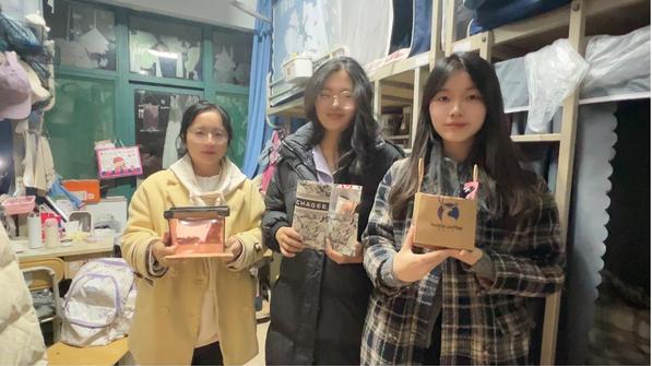 活动中同学们探索宿舍内的各类废弃物,如废旧纸张、衣物、塑料瓶等,运用自己的巧思妙想,将这些看似无用的物品变成精美的手工艺品或实用的生活物品,提交制作过程的图片或者视频,由辅导员和年级工作组成员评分,评选出获奖宿舍并发放奖品。同学们在有限的材料中发挥无限的创意,展现出宿舍的独特风采,废物再利用,提升宿舍的空间利用率。本次活动,女生们发挥想象力和创造力,将废弃物品转化为有用的艺术品或实用品,不仅减少了对环境的负担,还锻炼了同学们的动手能力和创新思维。2224-4宿舍樊香江赛后感慨道:“我与室友们一齐动脑筋,发挥想象力,也参考了网络上的精美作品,最终将宿舍中废弃的包装袋,巧妙转化为别致雅致的收纳袋。参加比赛的过程中,我们一边聊天一边重新整理了宿舍的个人物品,这让我们室友之间更加亲密。”