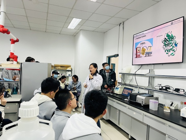 观察实验完成后,陈翠霞和李慧老师讲解并演示了与生物技术快速发展相关的3个具有代表性的实验,包括细菌基因组的提取、DNA的体外扩增以及琼脂糖凝胶检测。在讲解和演示基础实验的基础上,陈翠霞老师进一步拓宽员工的思维,将基础的实验操作技能延伸至清洁能源生物柴油的酶法绿色生产探究性实验,加深员工对基础知识的理解和应用,激发员工应用生物学基础知识,响应国家“碳中和、碳达峰”的重大技术需求,开发新型清洁能源,提升员工的家国情怀。