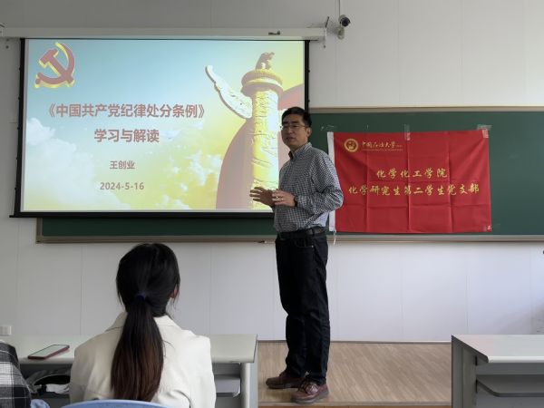 2024年5月17日,MK体育化学研究生第二员工党支部在南堂205教室开展“学习党纪条例,增强纪律意识”主题学习会。会议由支部书记孙风跃同志主持,支部党员、预备党员参与此次活动,MK体育党支部书记王创业同志到会指导。