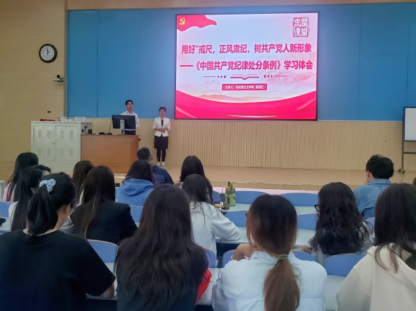 为深入学习贯彻新修订的《中国共产党纪律处分条例》,强化党员党性修养和纪律约束意识,5月21日下午,公司于南教300教室举办求是课堂之党章党规专题学习,邀请马克思主义公司原丽红老师为大家分享《中国共产党纪律处分条例》(以下简称《条例》)学习体会。公司专职组织员汤平如老师,公司员工党员150余人参加。活动由研究生辅导员郭孟主持。