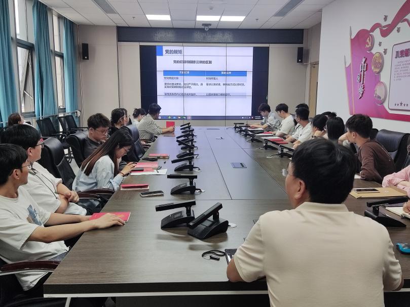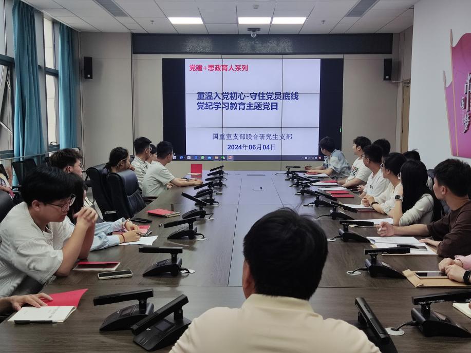 为深入贯彻落实习近平总书记关于党纪学习教育的重要讲话和指示精神,进一步增强全体党员的纪律意识和廉洁自律观念,2024年6月4日下午,重质油全国重点实验室党支部和化工研究生第三员工党支部联合开展“重温入党初心,守住党员底线——党纪学习教育”主题党日活动在古镇口校区国重楼B219党建活动室顺利举行。参与本次活动人员有重质油全国重点实验室支部副书记朱丽君、国重室教师代表及化工研究生第三员工党支部全体党员以及部分党员发展对象。