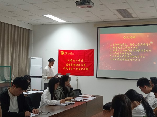 6月2日,生物与能源化工系研究生第一员工党支部于逸夫楼340召开预备党员转正大会,会议由支部书记郑亚茹主持,应到会有表决权党员29名,实到会有表决权党员27名。